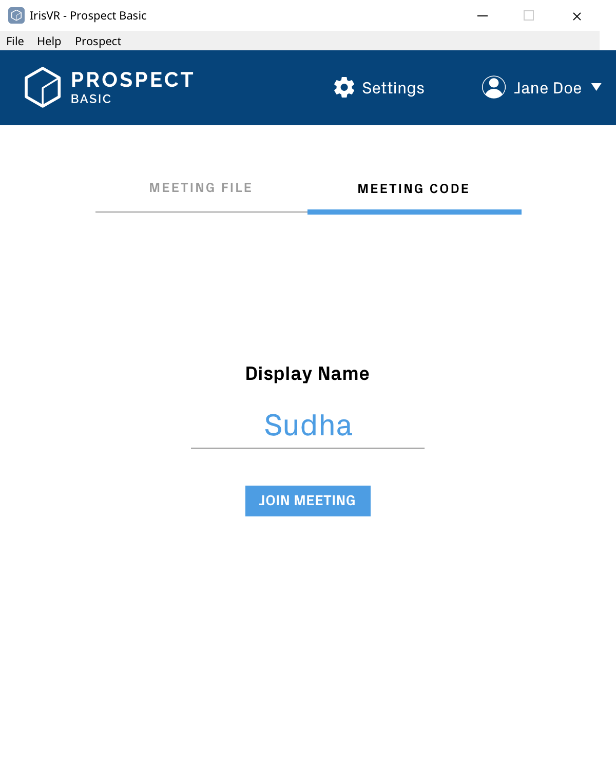 Sudha receives the instructions from Arno and downloads Prospect. As a guest, she doesn't need to create an account and can simply join the meeting with the code.